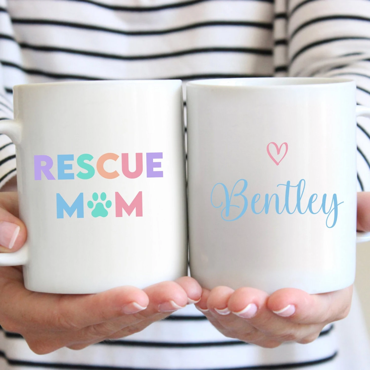 904 Custom Personalized Rescue Mom Pastel Mug, 11-oz