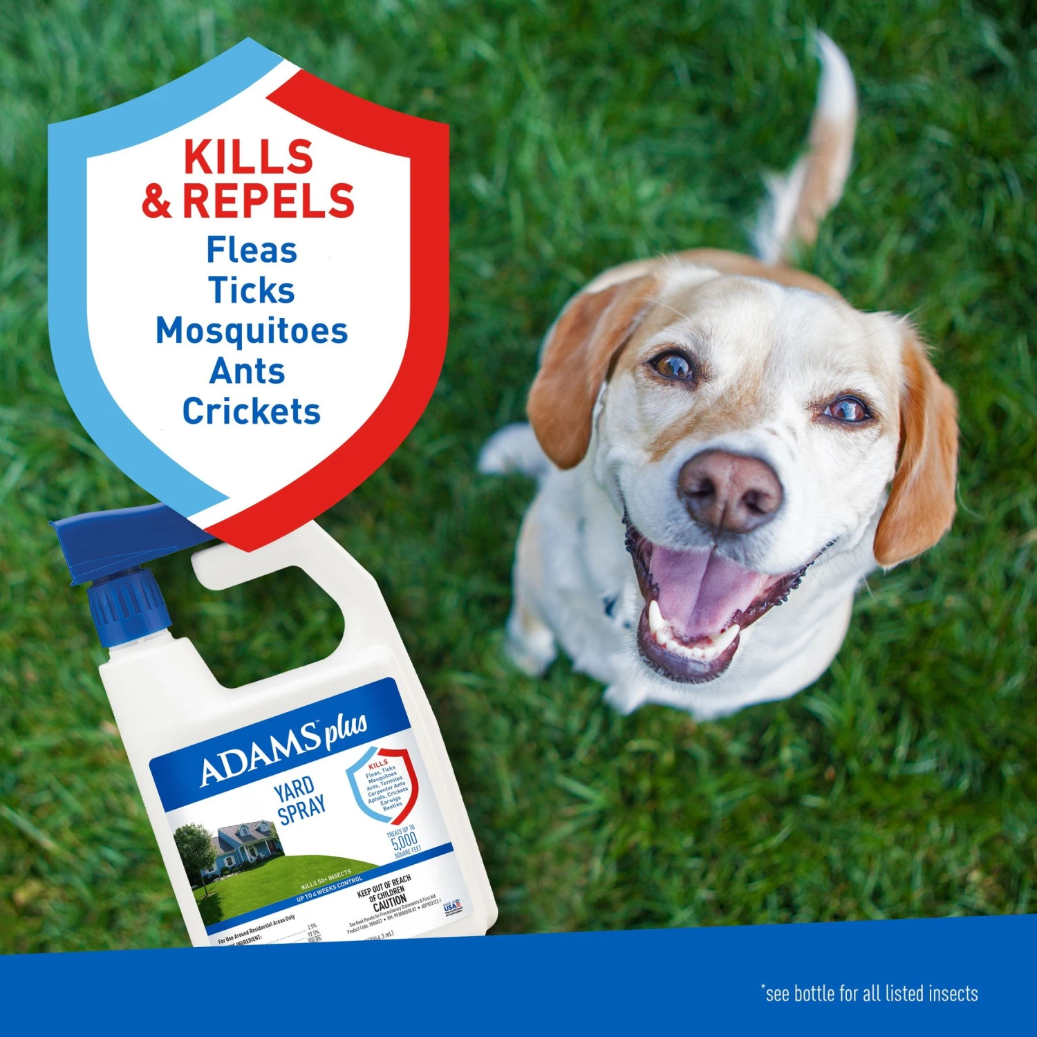 - Kills over 50 listed insects, including fleas, Japanese beetles, mosquitoes, fire ants, and more (see full list on back of product)!