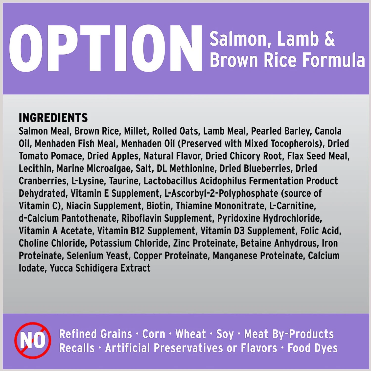 - Crafted with salmon, free-range, grass-fed lamb and healthy whole grains.