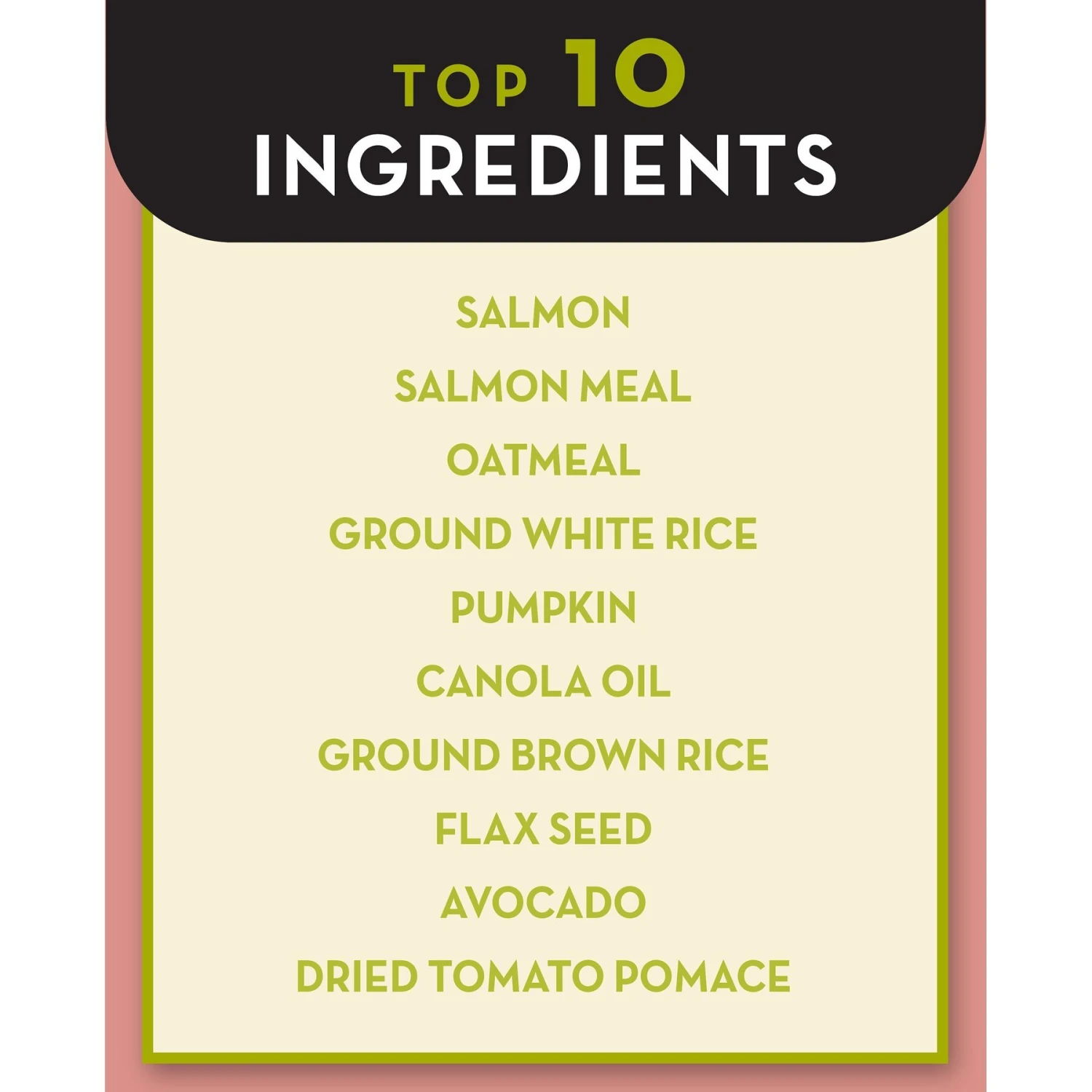- Limited ingredient recipe features salmon as the first ingredient and the only source of animal protein.