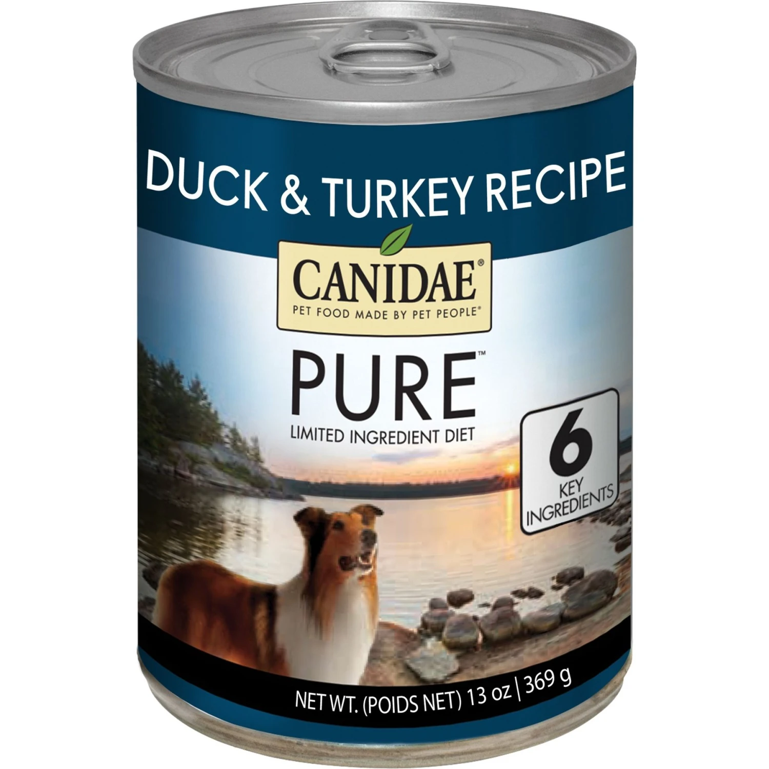 CANIDAE PURE All Stages Grain-Free Limited Ingredient Duck & Turkey Recipe Canned Dog Food, 13-oz & CANIDAE PURE All Stages Grain-Free Limited Ingredient Lamb, Turkey & Chicken Recipe Canned Dog Food, 13-oz