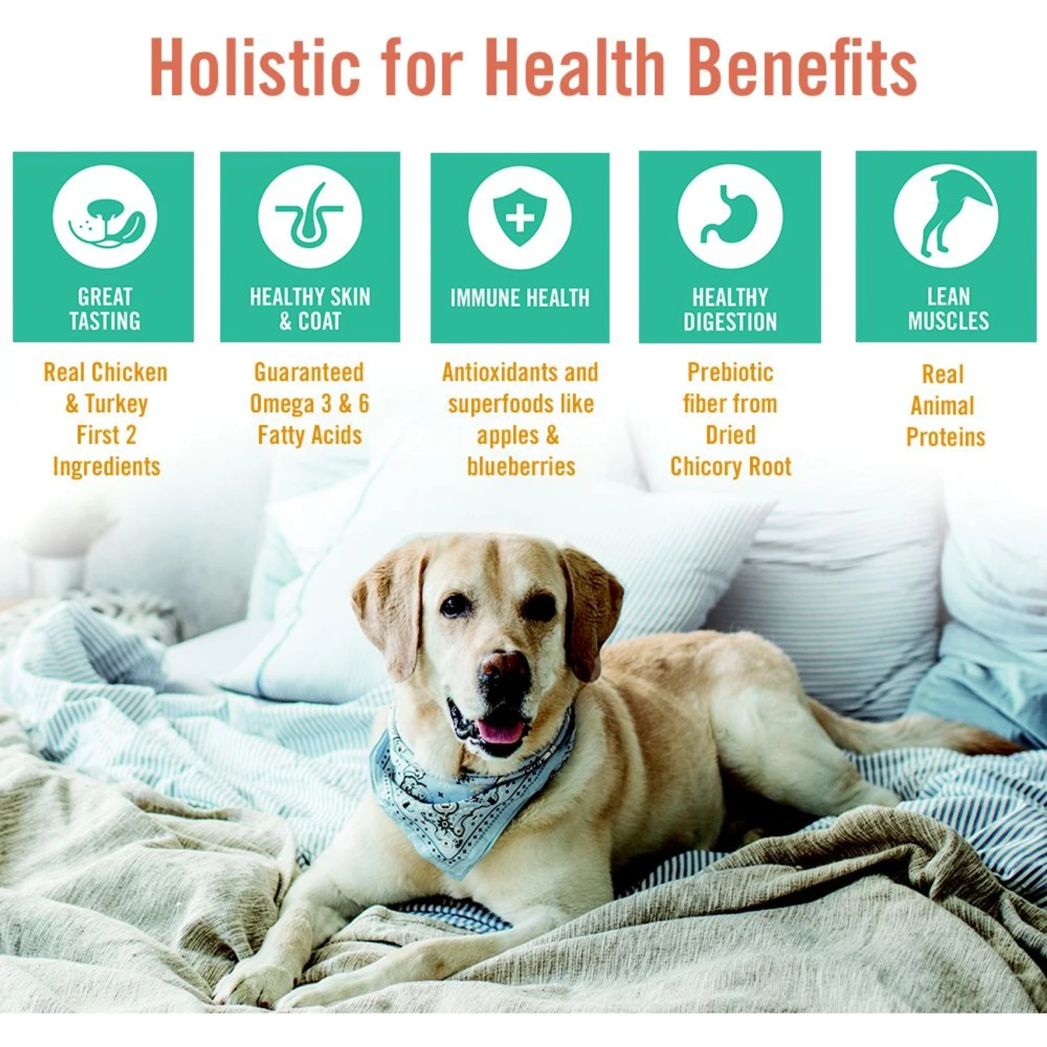 - Adult dogs love the great taste from real chicken, turkey, salmon and duck—and paw-rents love that they support lean muscles!