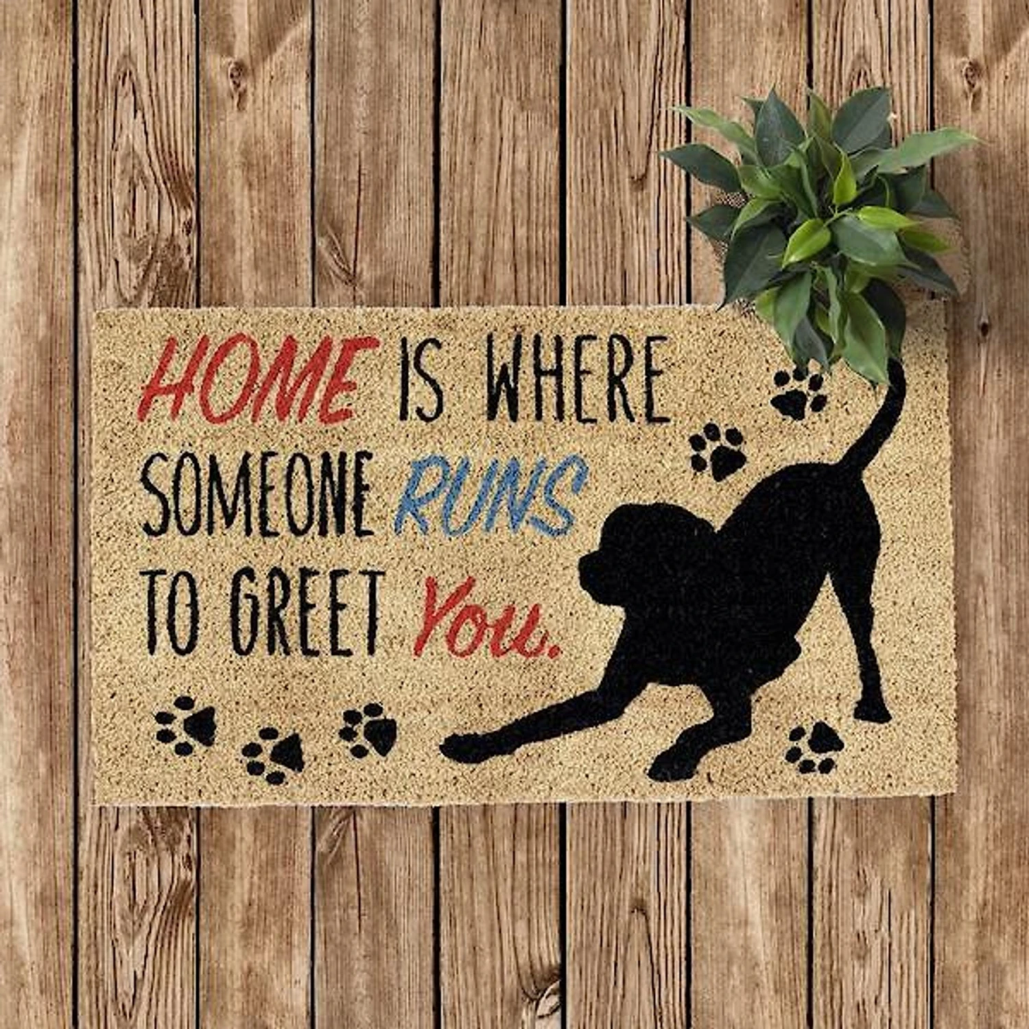 - Doormat features the phrase “Home is Where Someone Runs to Greet You.”