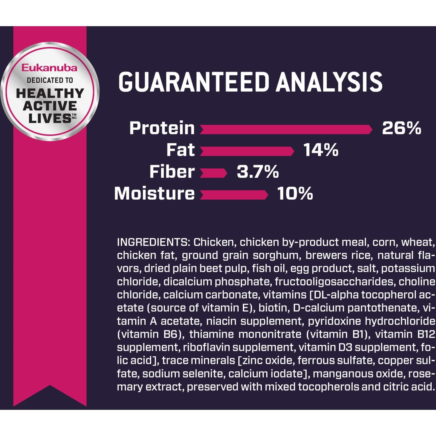 - Supports muscle growth and bone health in active pups with high-quality animal protein and optimized levels of calcium and phosphorous.