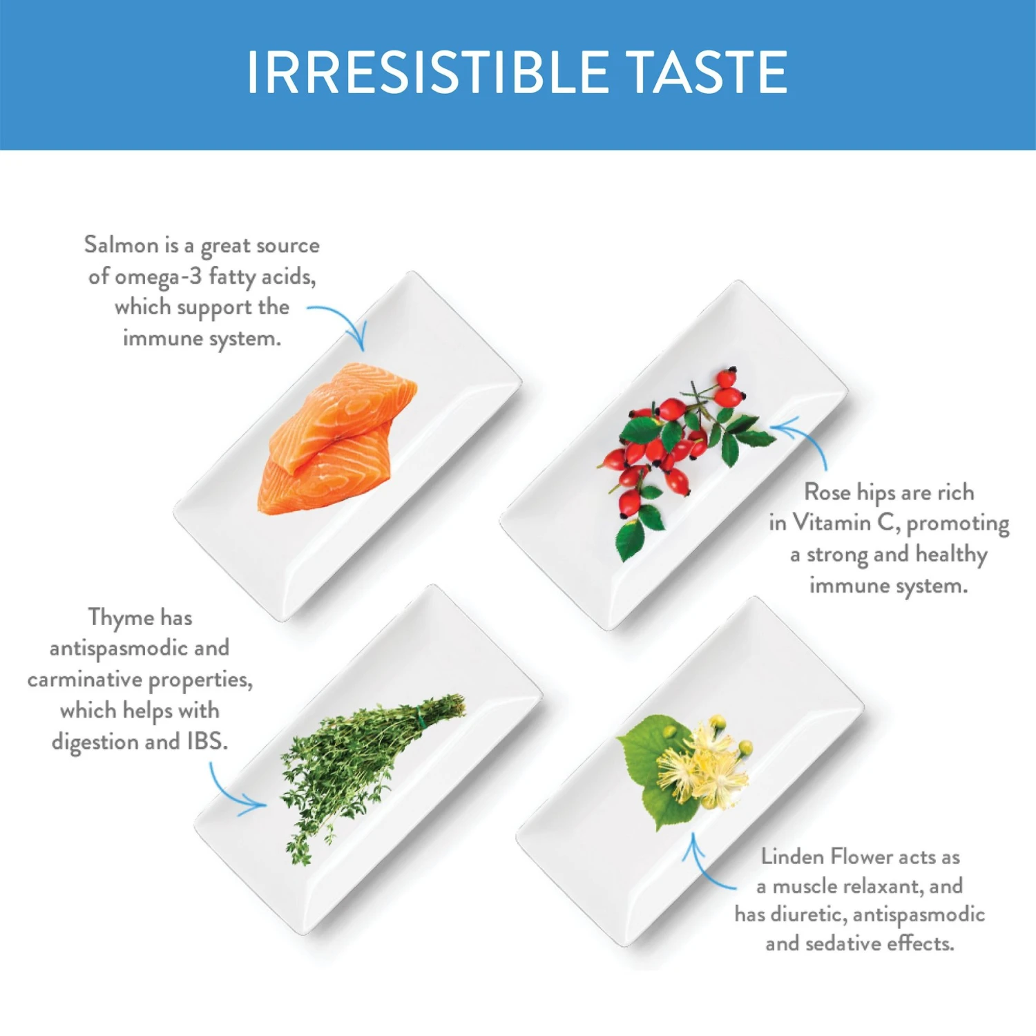- Enhanced with rose hips, linden flowers, and thyme to support healthy development and good health in puppies.