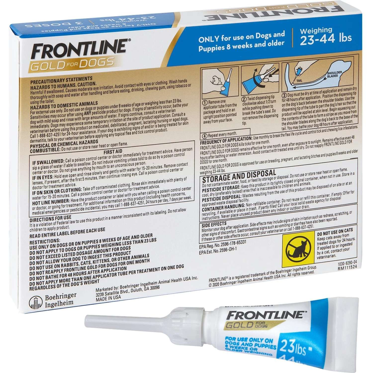 Help protect your best bud from fleas with FRONTLINE Gold for Dogs Flea & Tick Treatment. This formula helps kill adult fleas, flea eggs, flea larvae, and ticks after regular use. It’s formulated with three active ingredients—fipronil, (S)-methoprene, and pyriproxyfen—to help disrupt the flea life cycle and fend off future flea infestations. Plus, it’s simple to apply, and designed to be waterproof and last for one month. Enjoy walks and hikes with your canine companion without worrying about nasty pests.