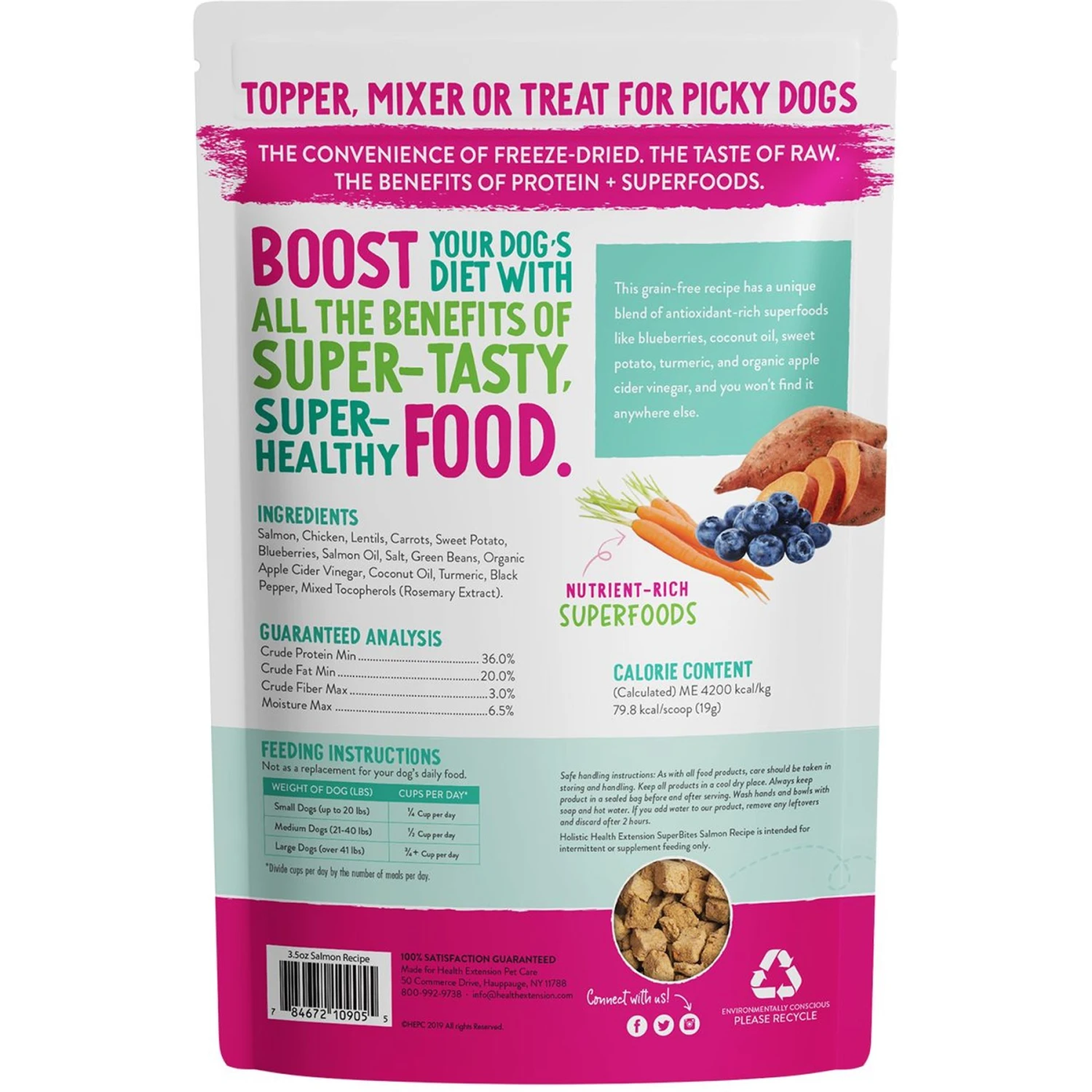 Health Extension Super Bites Salmon Recipe Freeze-Dried Raw Dog Food Mixer