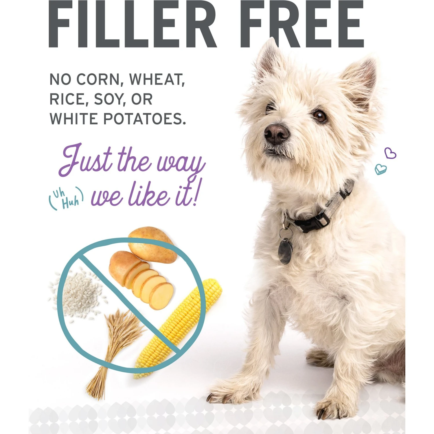 - Created without fillers that bulk up your fur-iend’s food since they have little nutritional value and can contribute to obesity and lethargy.