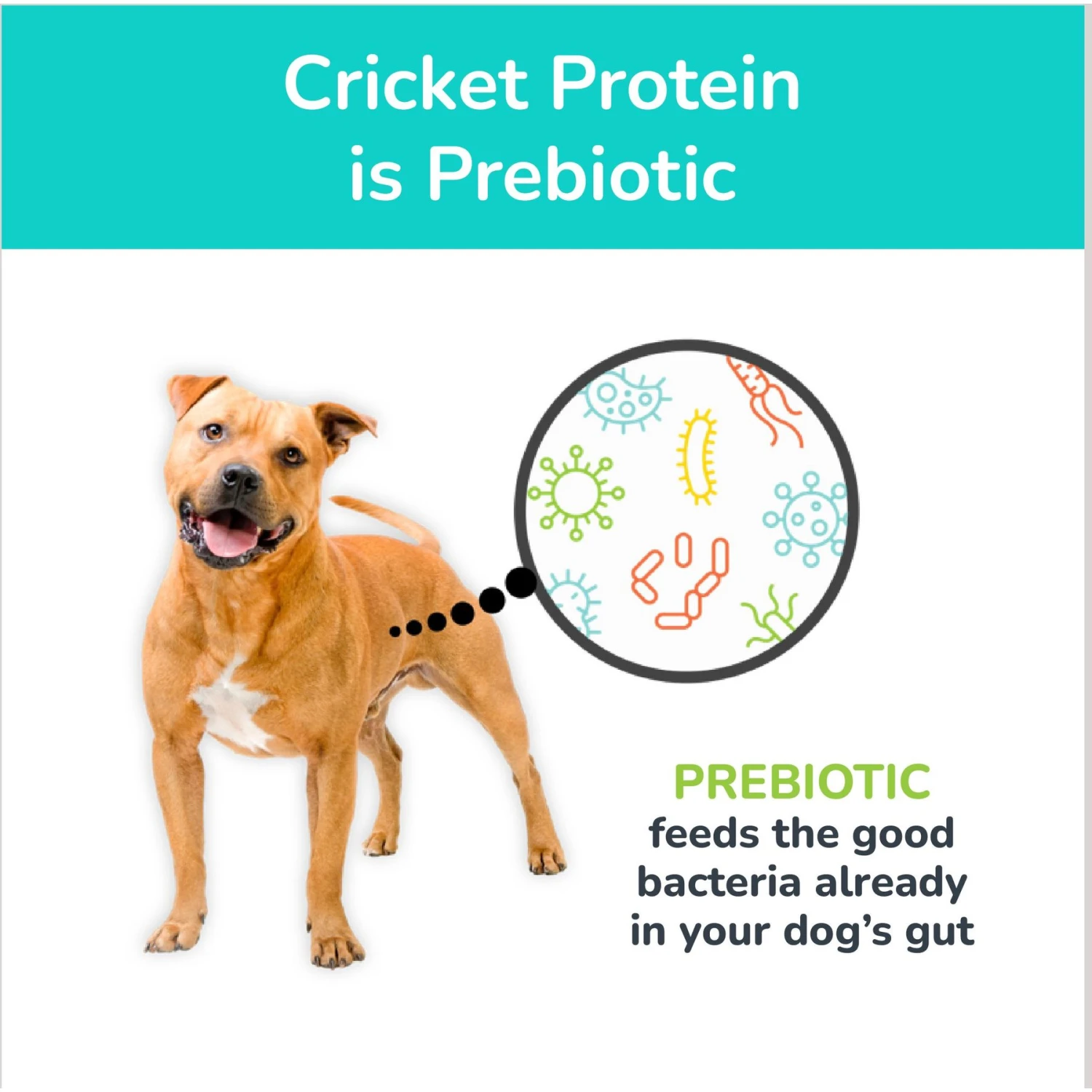 - Made with crickets, an alternative protein that’s great for dogs with food allergies—plus, it’s naturally prebiotic to aid in healthy digestion.