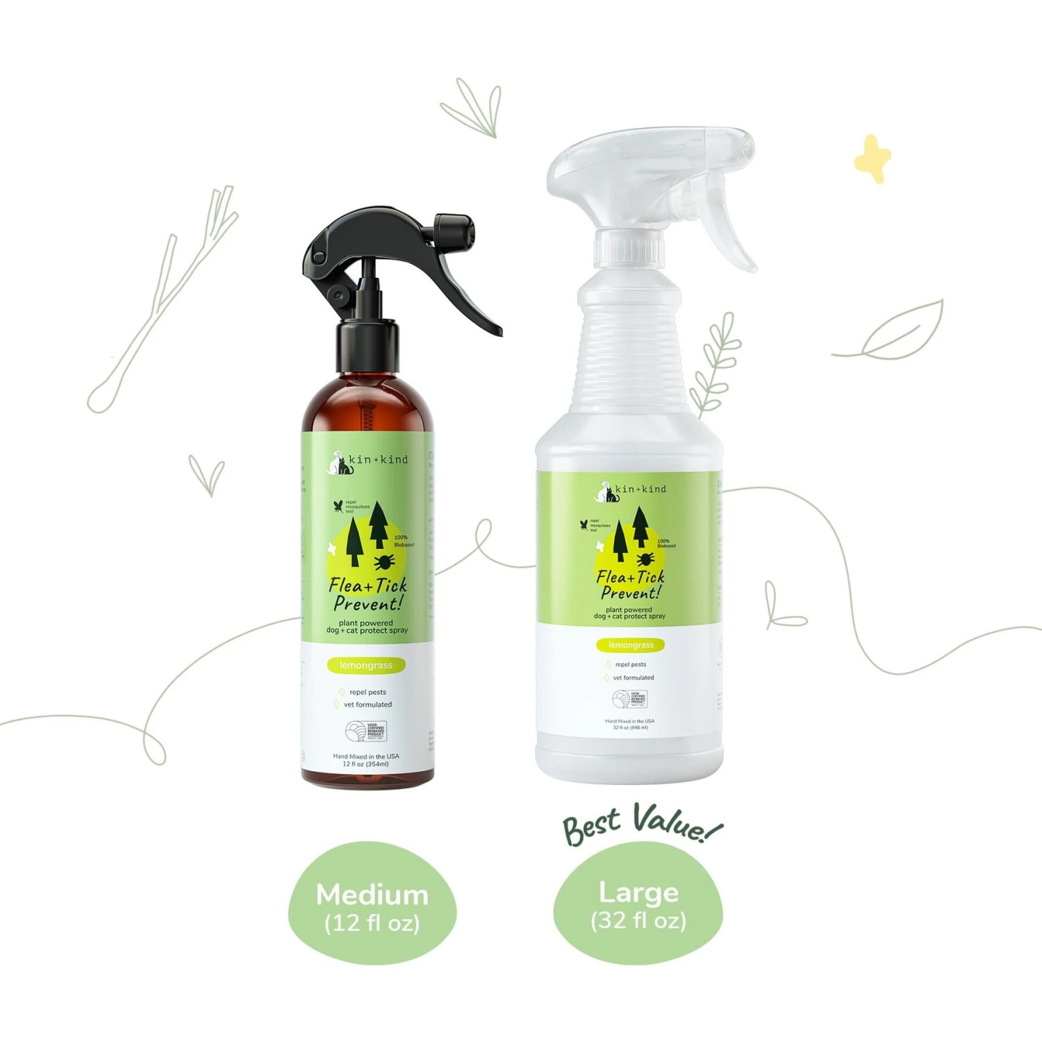 Help protect your pet from unwanted fleas and ticks with kind+kind Flea + Tick Prevent Lemongrass Dog & Cat Spray. This vet-formulated product is plant-based—which makes for happier pets and a happier planet. Apply this product with confidence, knowing that it’s good for the environment and your pet’s health.