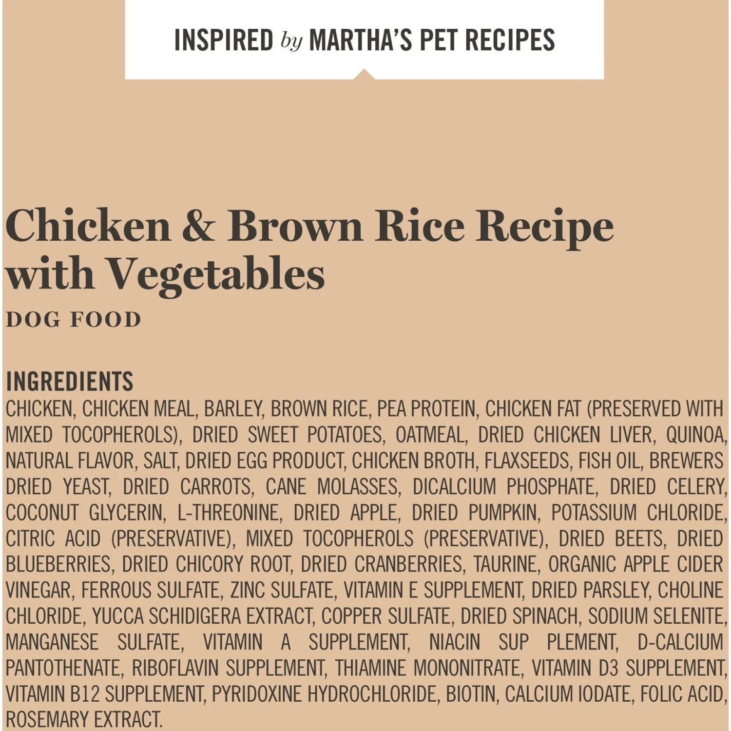 This proven palate pleaser is packed with wholesome, nutritious ingredients that fuel your pet’s everyday adventures. The Martha Stewart Chicken and Brown Rice Recipe with Garden Vegetables Dry Dog Food features real, deboned chicken and cage-free eggs to provide the protein and amino acids your pet needs for maintaining lean muscle. Hearty brown rice and oatmeal offer the prebiotic dietary fiber needed for optimal gut health, and wholesome fruits and veggies like pumpkin, spinach and blueberries deliver additional fiber, plus beneficial phytonutrients and antioxidants. Omega fatty acids such as omega-3 and omega-6 are generously sourced to support healthy development of the brain and eyes as well as the optimal care of your best friend’s skin and coat. The eco-friendly air-dry process yields a moister, superior texture and savory bouquet that is a trusted mealtime favorite. This 100% complete and balanced recipe contains no corn, wheat, soy, preservatives or artificial colors, making it a sensible choice for dogs who are prone to food sensitivities.