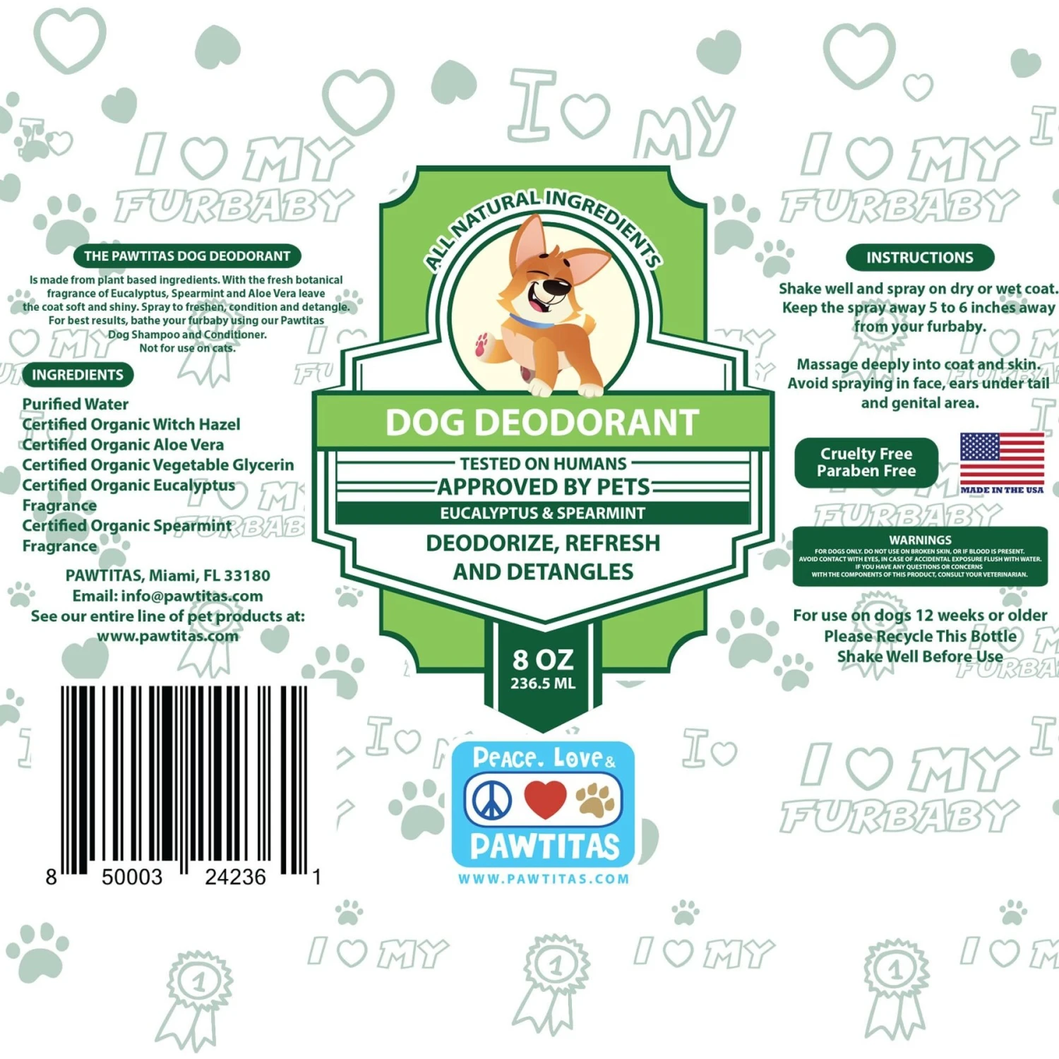 - Herbal deodorant designed to be used on your furry friend in between baths.