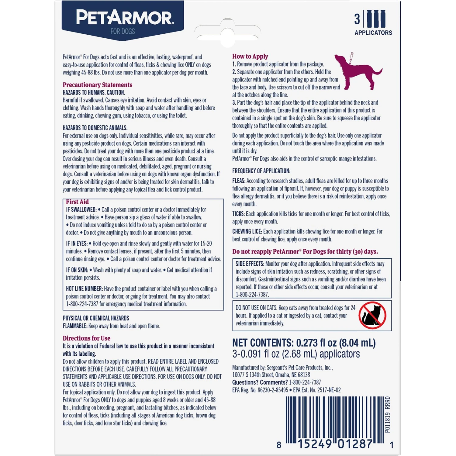 PetArmor Flea & Tick Spot Treatment For Dogs, 45-88 Lbs