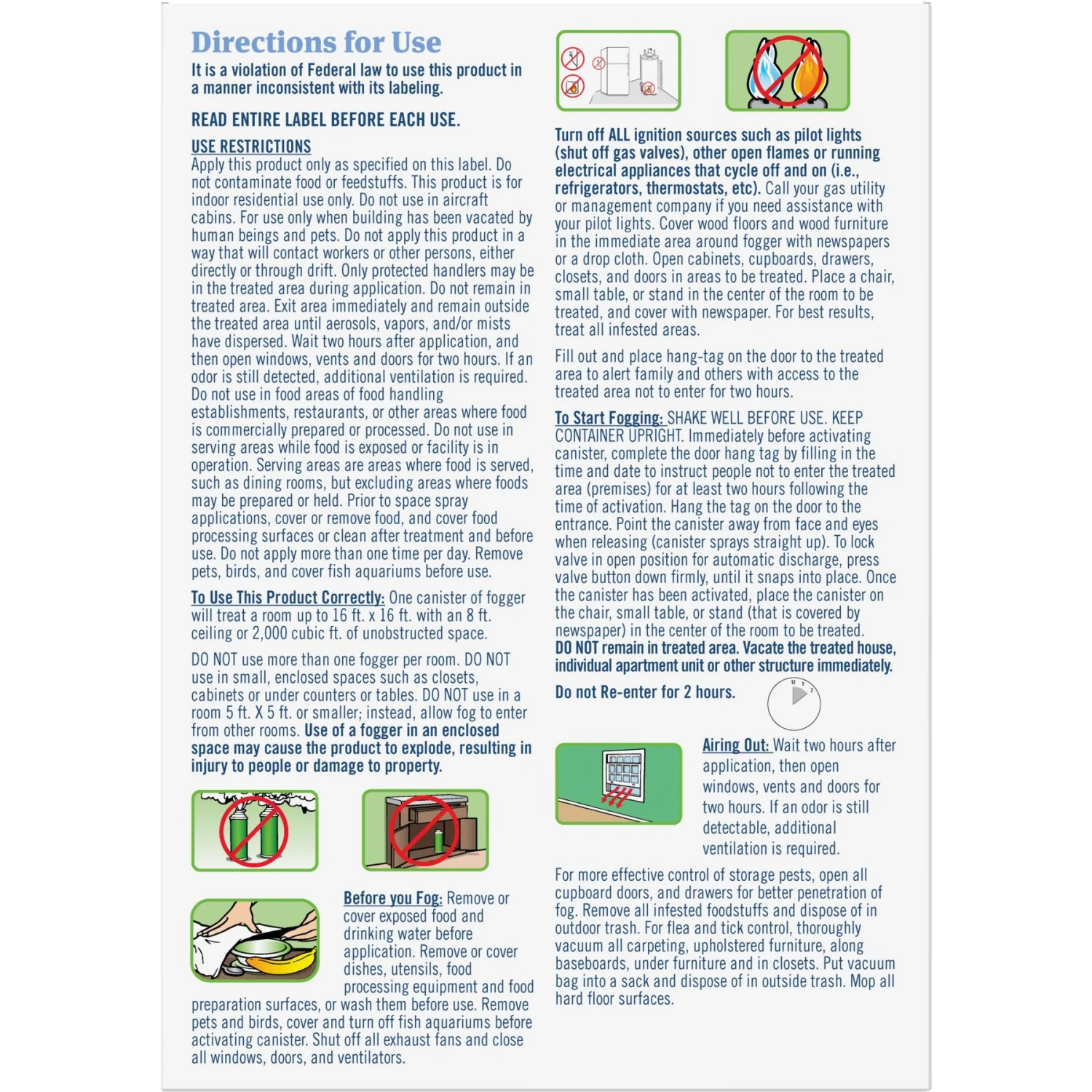 - 2-ounce fogger treats up to 2,000 cubic feet.