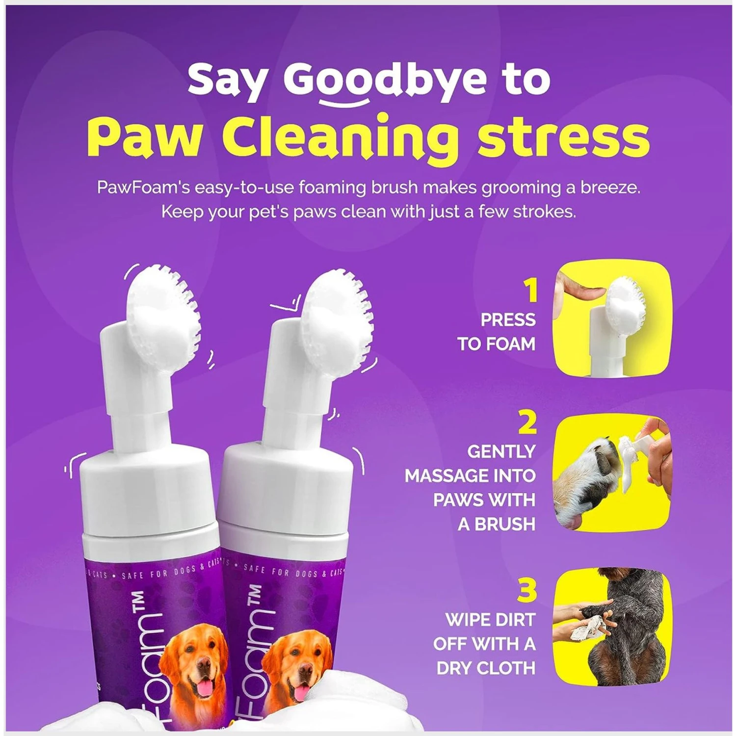 - PawFoam successfully cleans and moisturizes paws and nails in just a few seconds.
