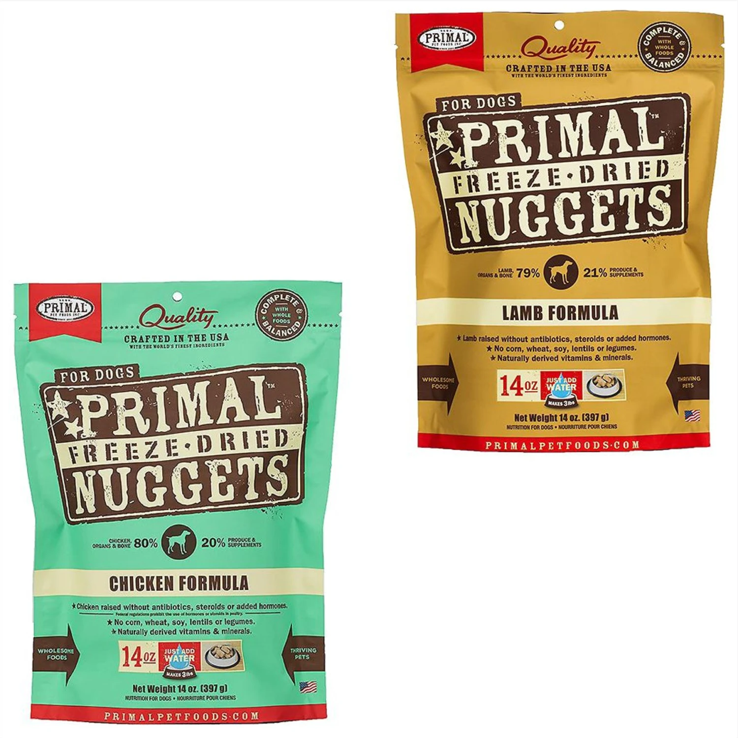Primal Chicken Formula Nuggets Grain-Free Raw Freeze-Dried Dog Food & Primal Lamb Formula Nuggets Grain-Free Raw Freeze-Dried Dog Food