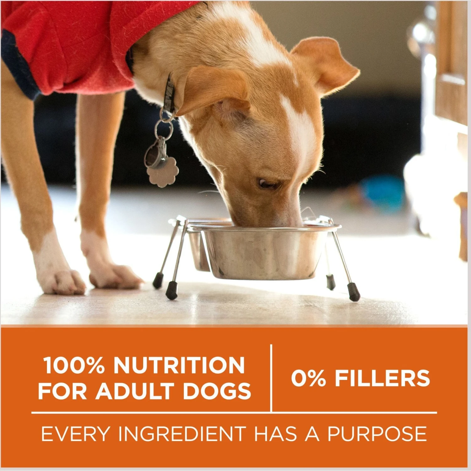 - This dry food provides 100% complete, balanced nutrition for adult dogs and is proudly made in Purina-owned US facilities.