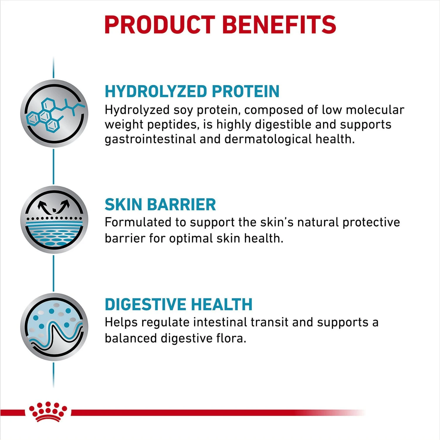- Royal Canin Hydrolyzed Protein is a veterinary-exclusive wet dog food for adult dogs with food sensitivities.