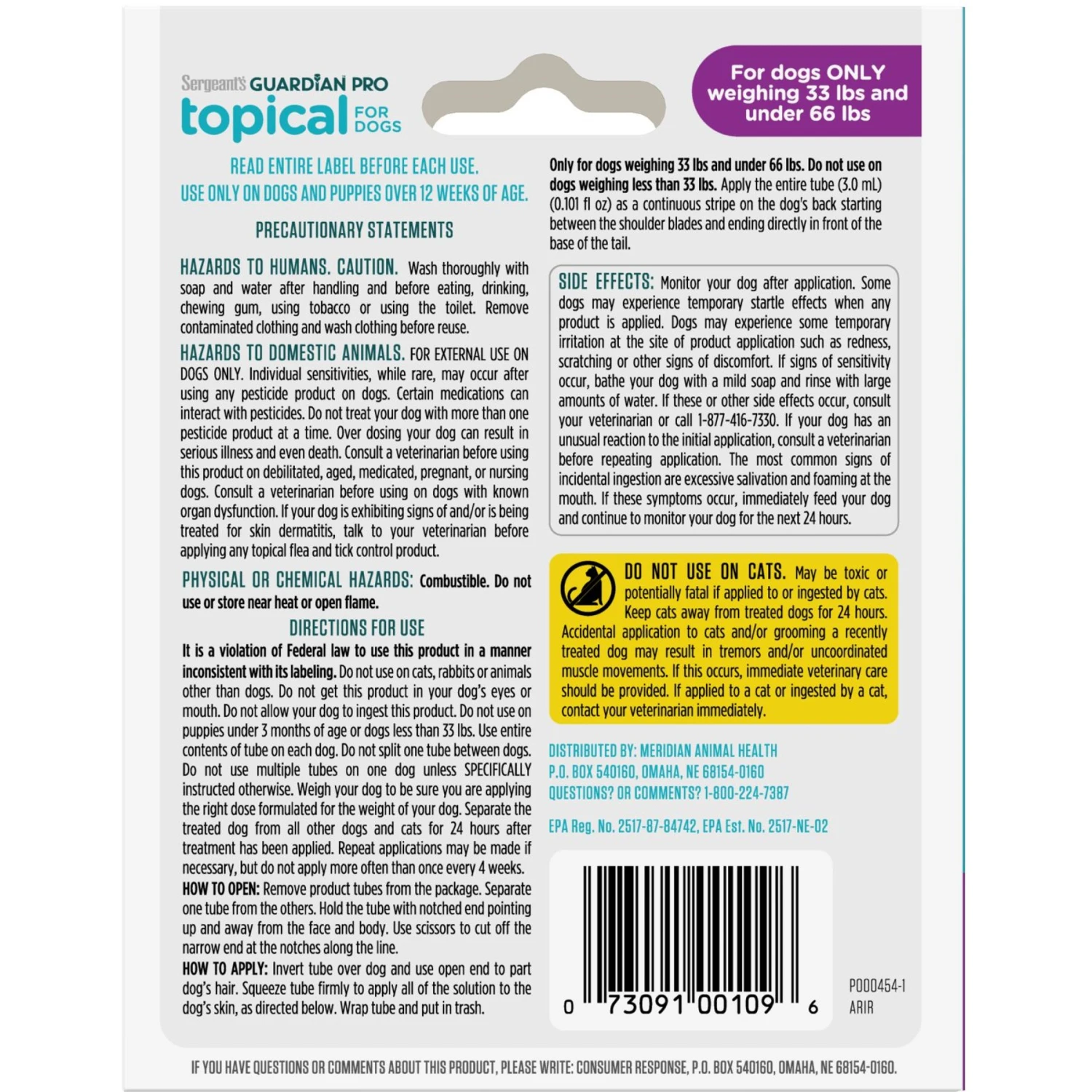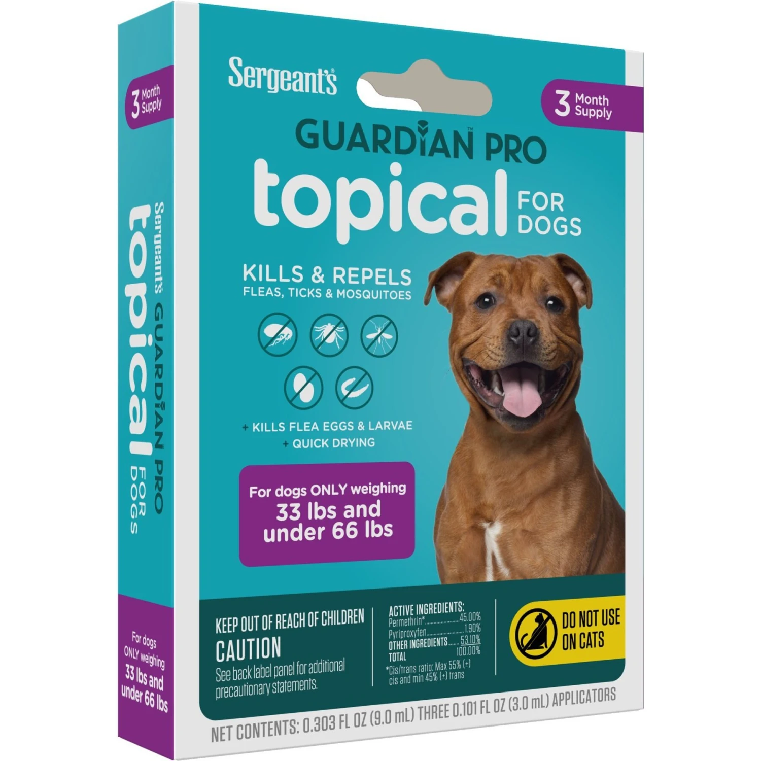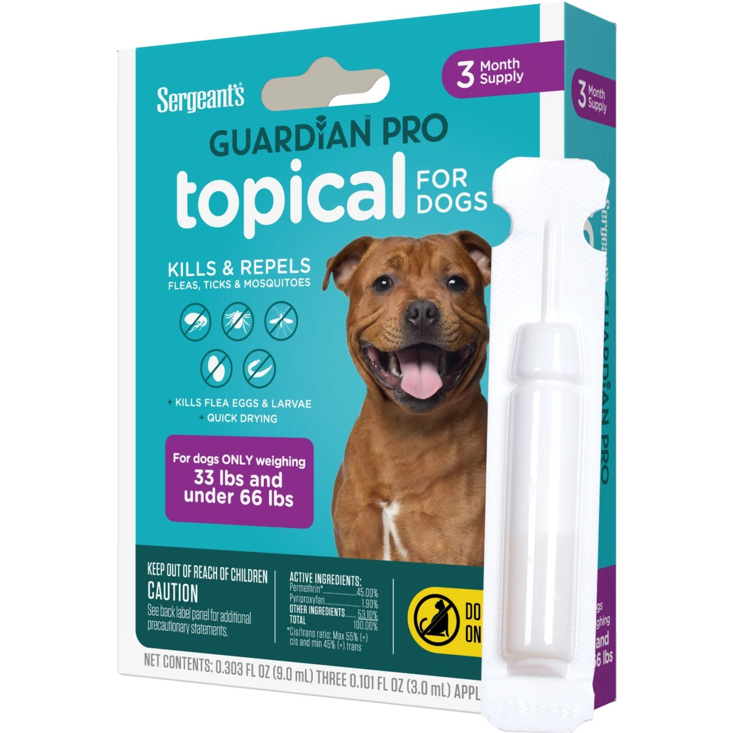 Sergeant’s Guardian Dog Pro Flea & Tick Topical Treatment, 33-66-lb, 3 Count