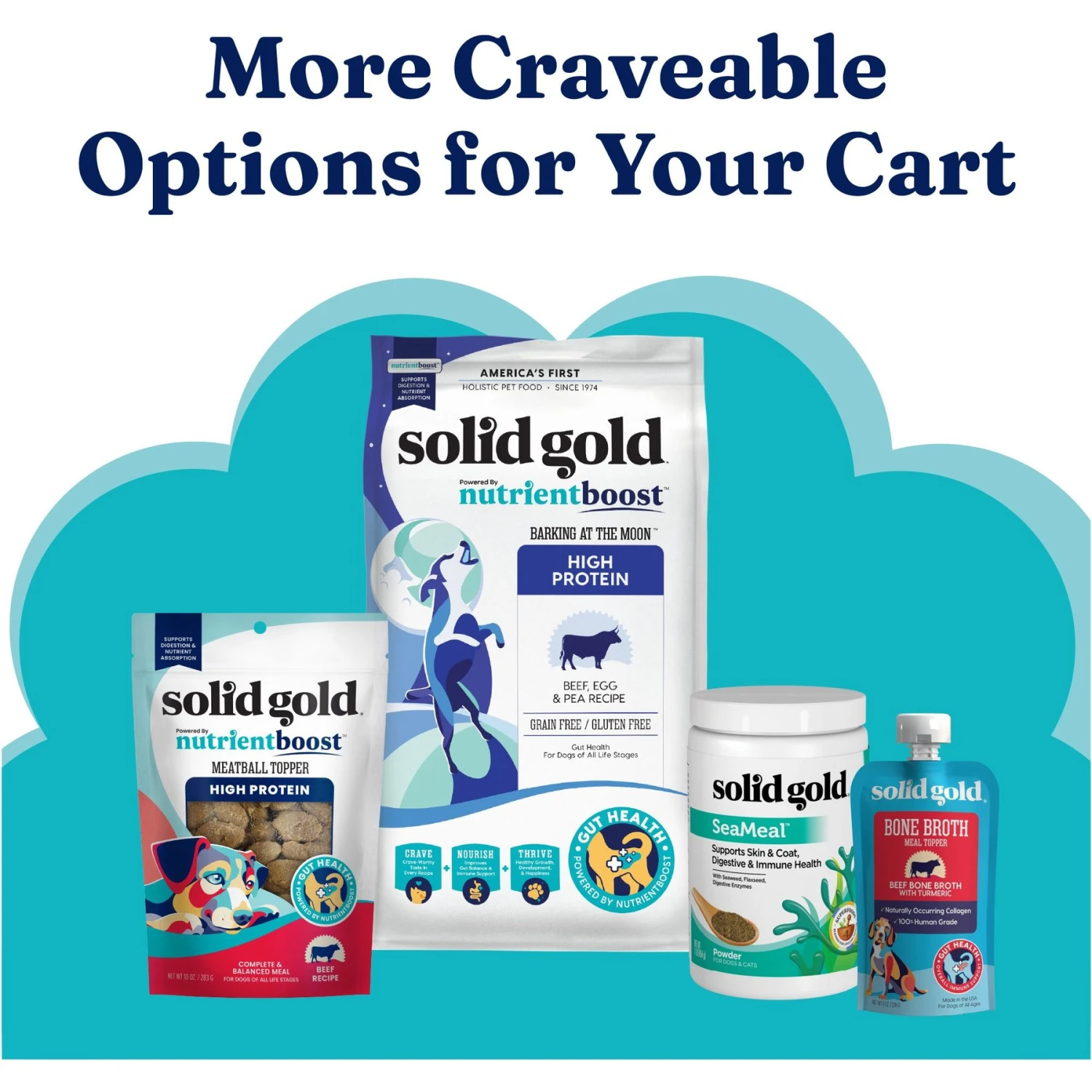 - Make other dogs “Green” with envy when you feed your pup Solid Gold Green Cow, a yummy wet dog food made with fine-tuned levels of protein, vitamins, antioxidants, fiber, and omega-3 fatty acids.