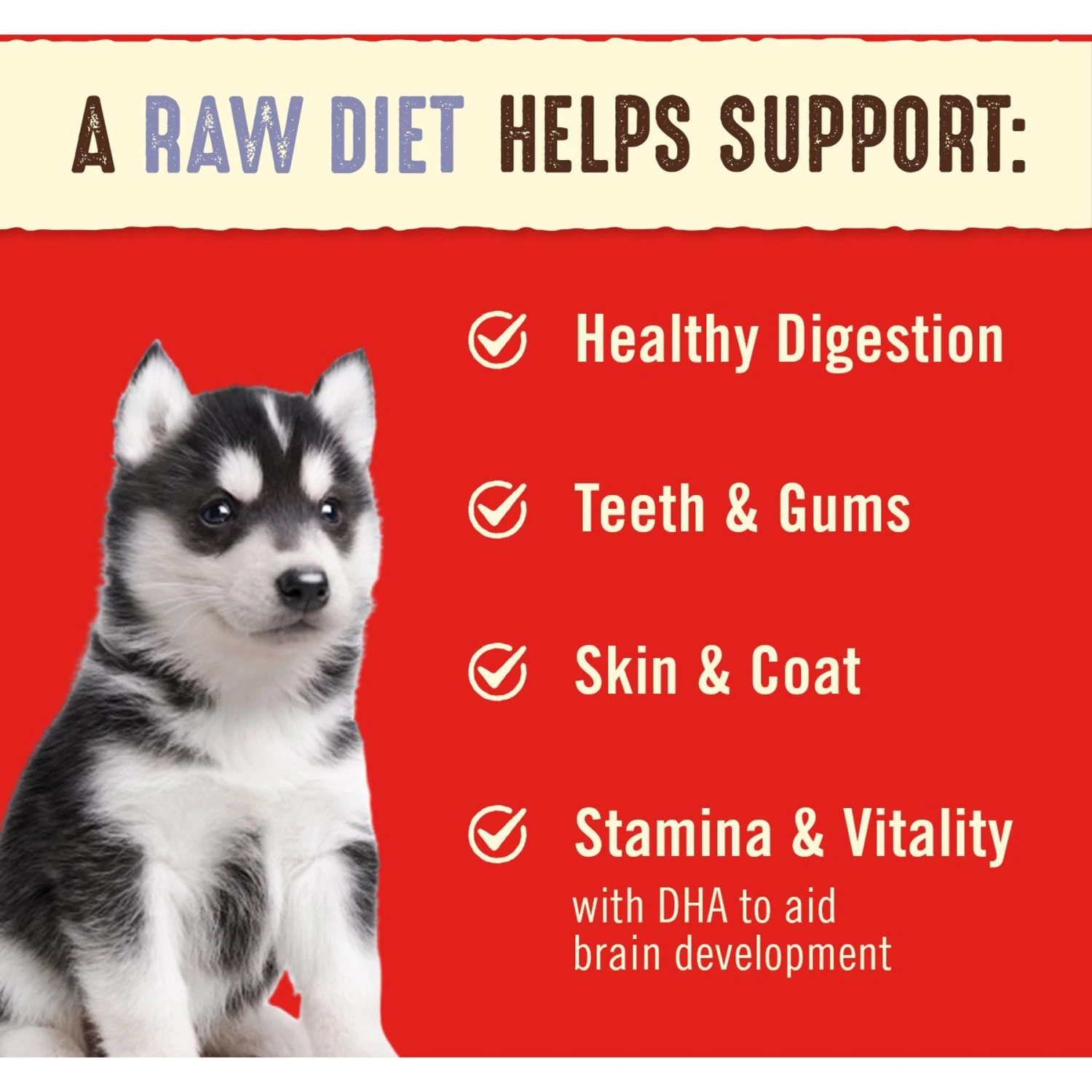 - Formulated with added vitamins and minerals, this recipe is made with 95% cage-free poultry, organs and safely grounded bone, to provide your puppy pal with the nutrients she needs.