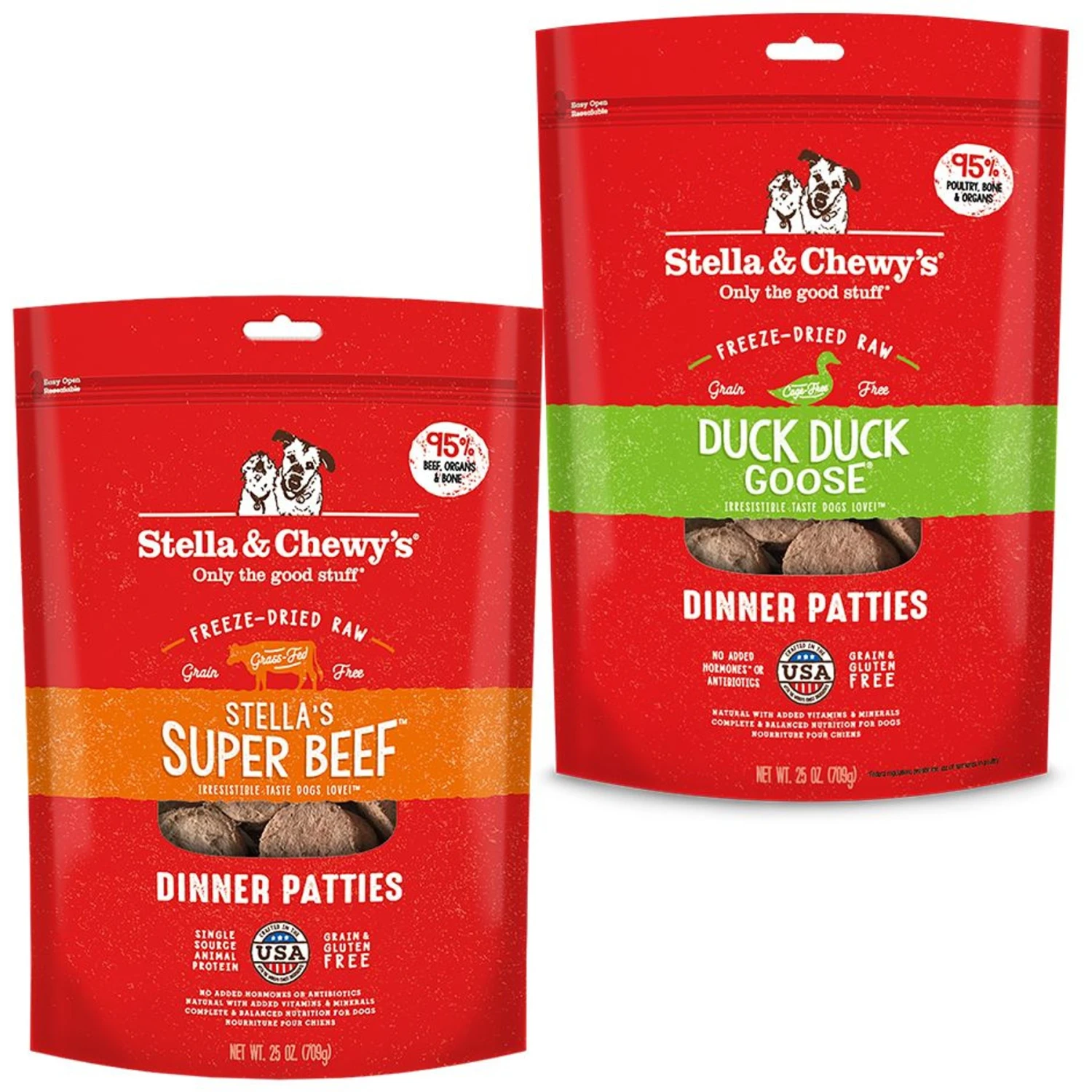 Stella & Chewy’s Stella’s Super Beef Dinner Patties Freeze-Dried Raw Dog Food & Stella & Chewy’s Duck Duck Goose Dinner Patties Freeze-Dried Raw Dog Food