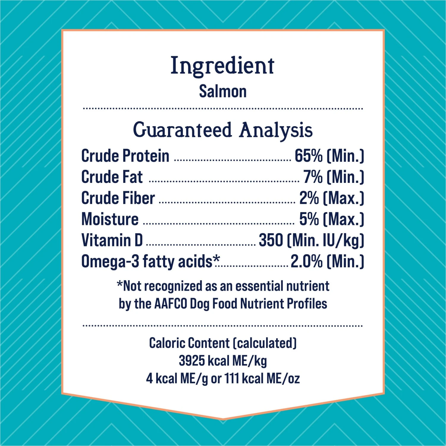 - Single ingredient treats—Made from 100% pure wild salmon, these freeze-dried dog treats are gluten-free, grain-free, and are packed with protein, vitamin D, and well-balanced amino acids to support strong muscles.