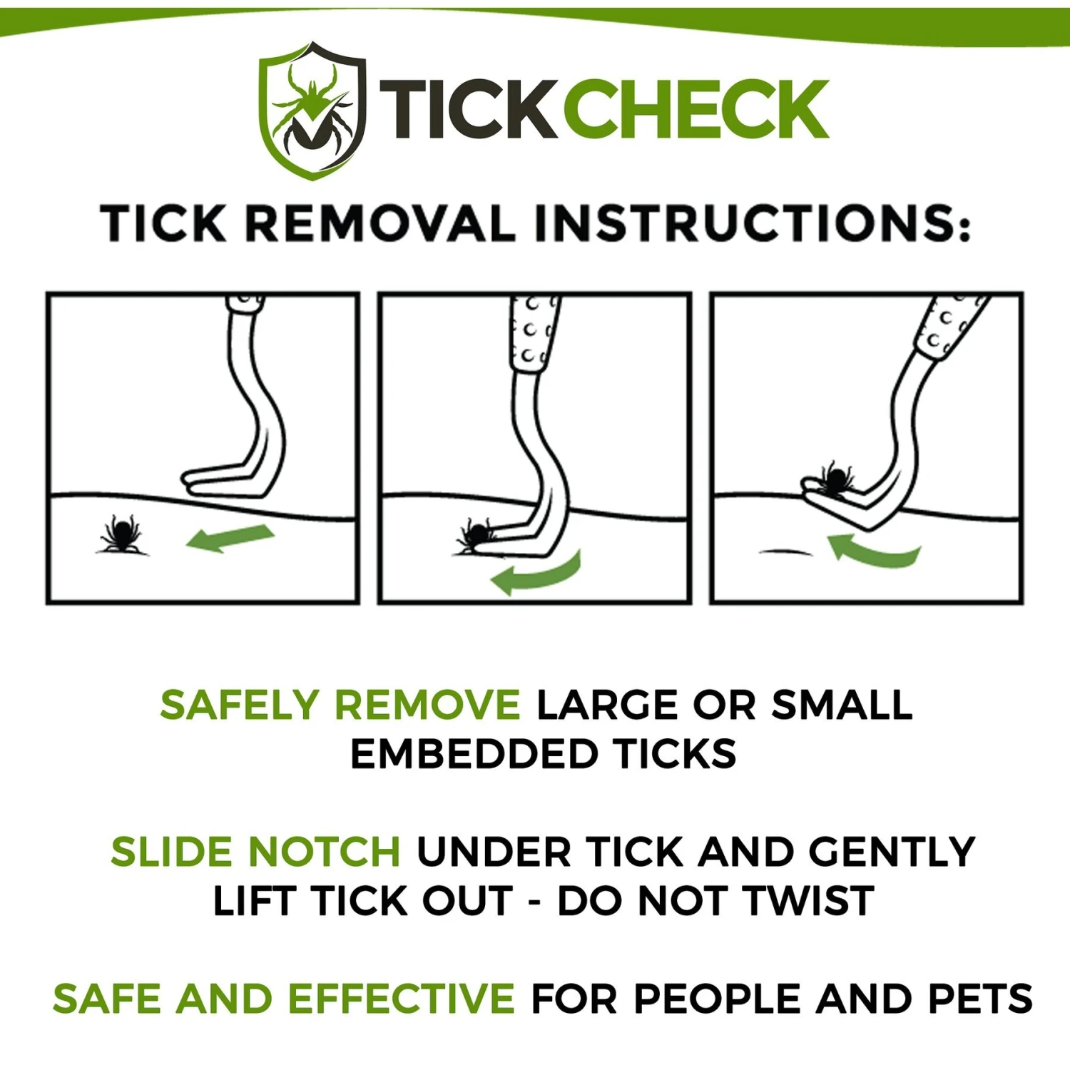 - Follow the included instructions for safe and complete tick removal by pulling, not twisting, the tick.