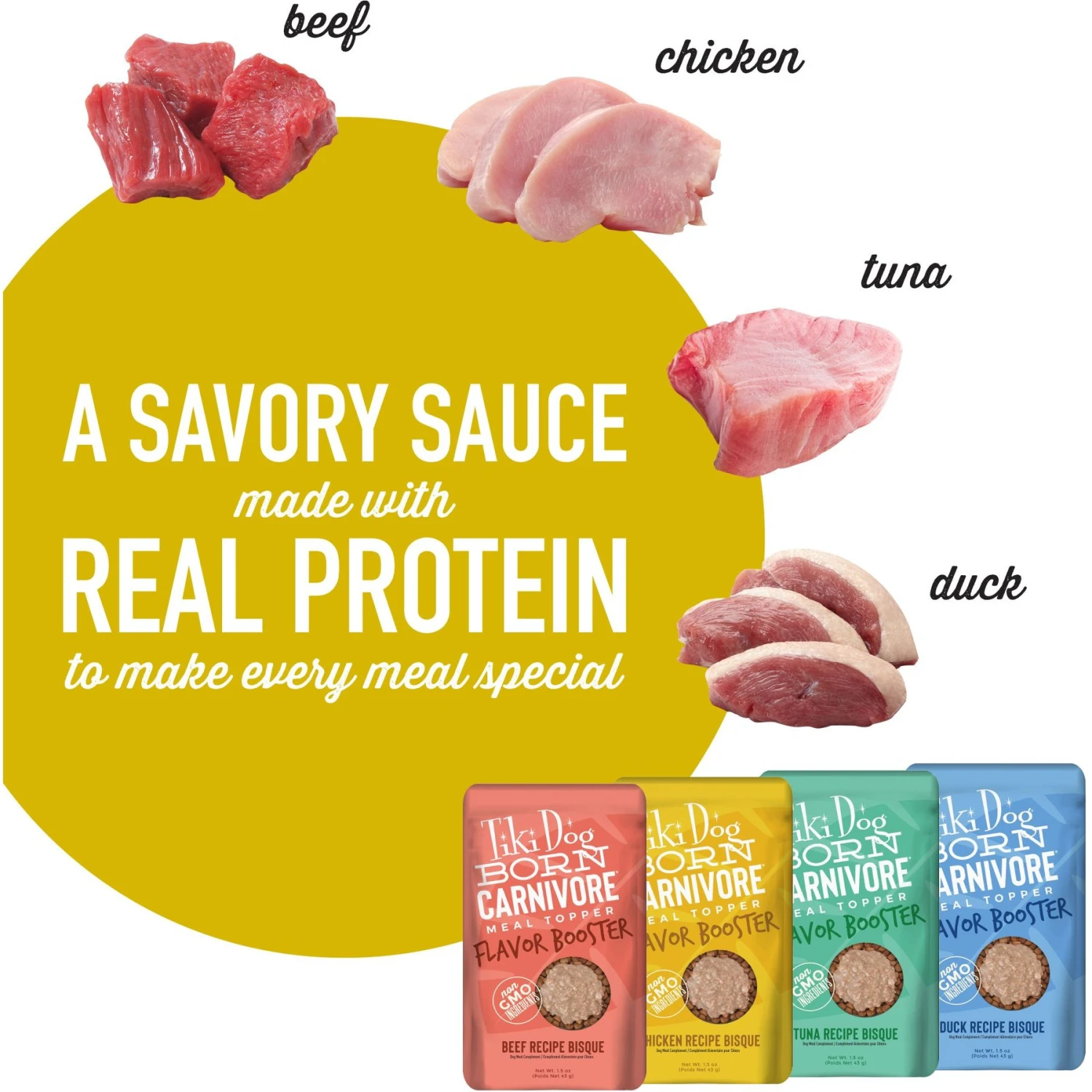 Tiki Dog Born Carnivore Flavor Booster Bisque Variety Pack Non-GMO Wet Dog Food Topper, 1.5-oz Pouch, Case Of 12