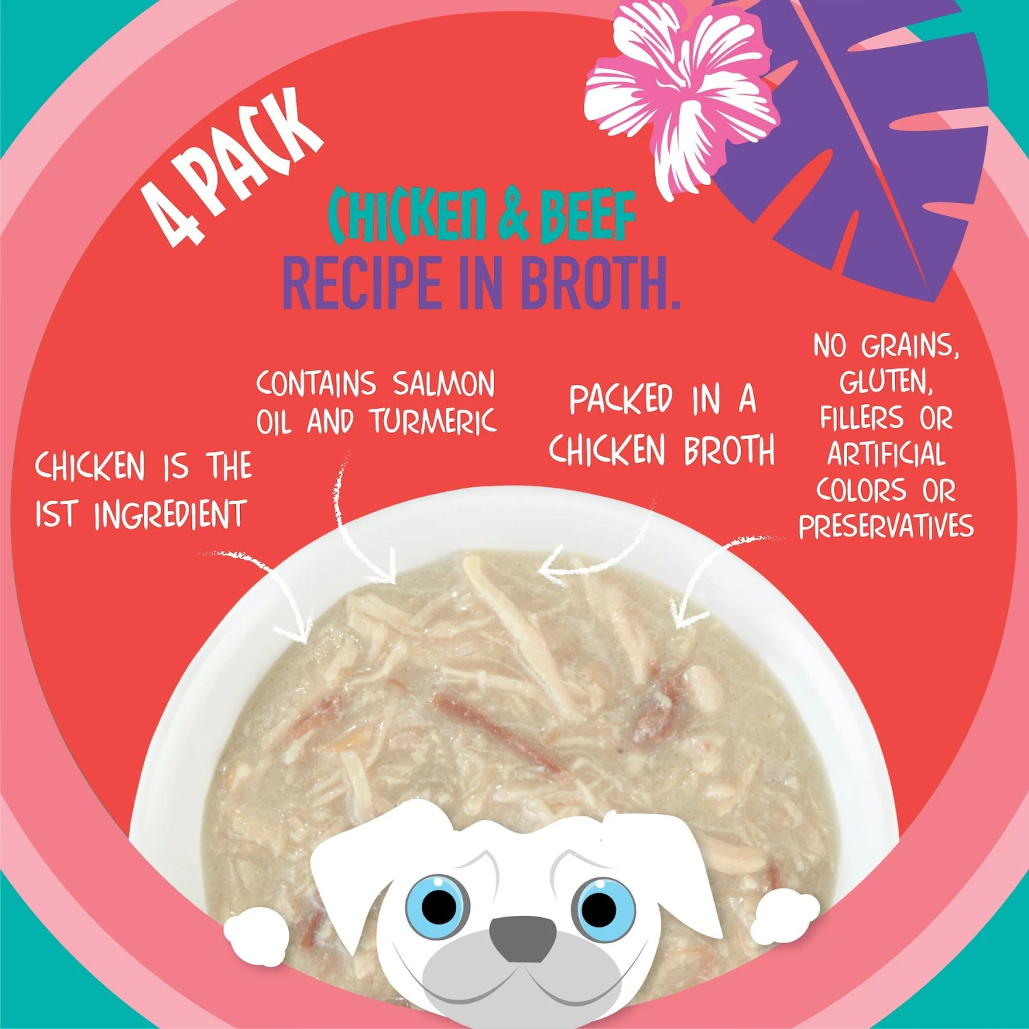 Tiki Dog Meaty High Protein Diet Chicken With Beef Recipe In Broth Grain-Free Wet Dog Food, 3-oz Cup, Case Of 4