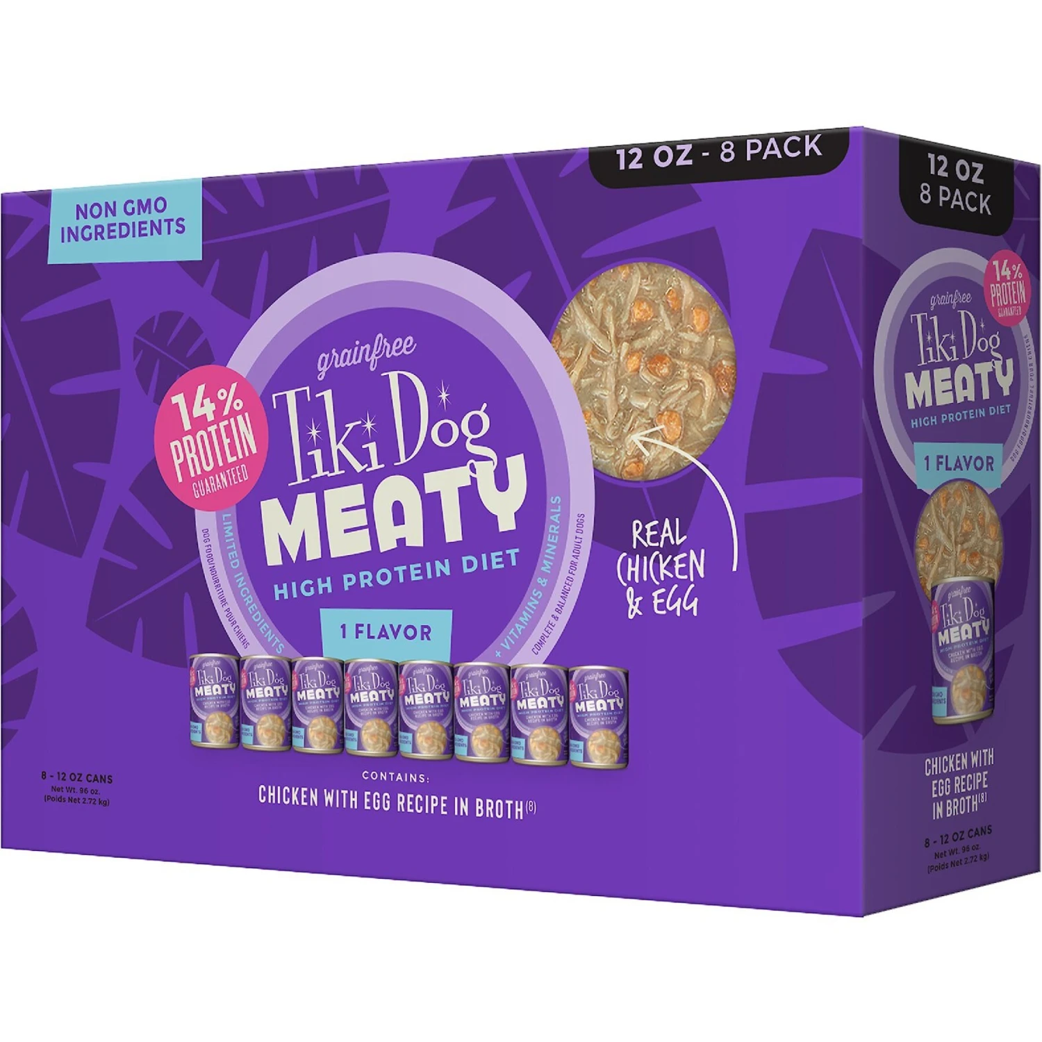 Tiki Dog Meaty Whole Foods Grain-Free Chicken & Egg Shredded Canned Dog Food, 12-oz, Case Of 8