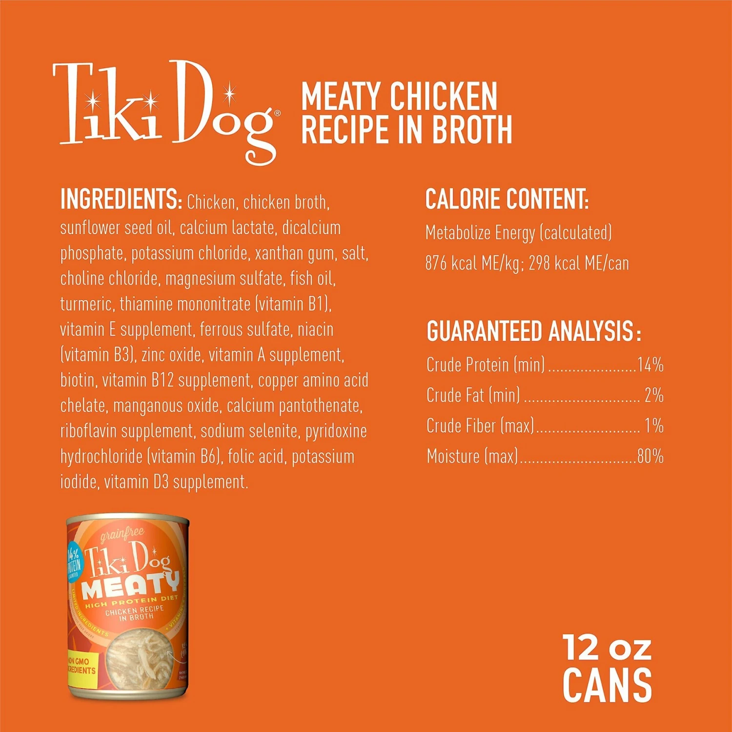 Tiki Dog Meaty Whole Foods Grain-Free Chicken Shredded Canned Dog Food, 12-oz, Case Of 8