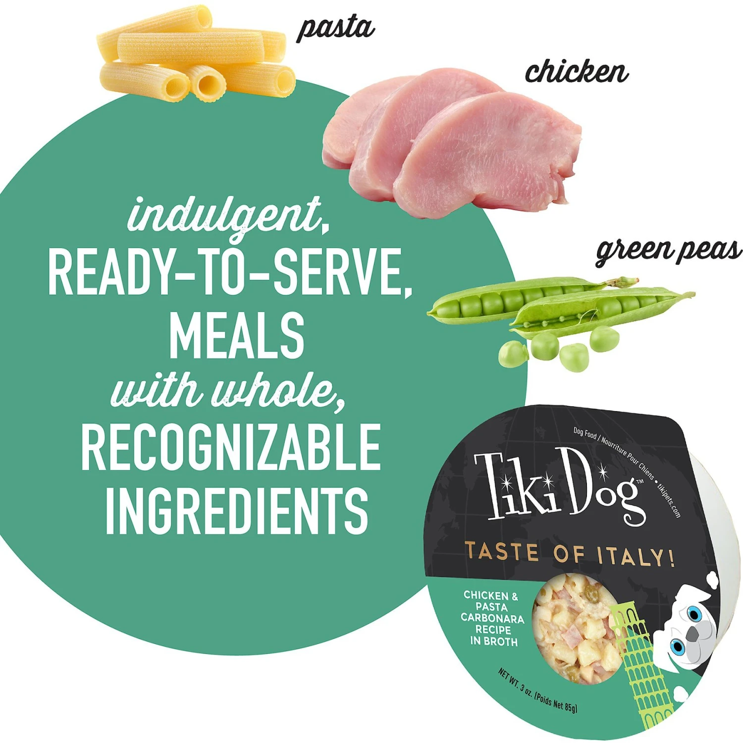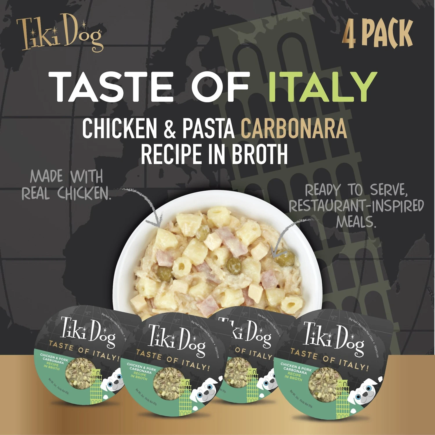 Tiki Dog Taste Of Italy Chicken, Pasta & Carbonara Recipe In Broth Wet Dog Food, 3-oz Cup, Case Of 4