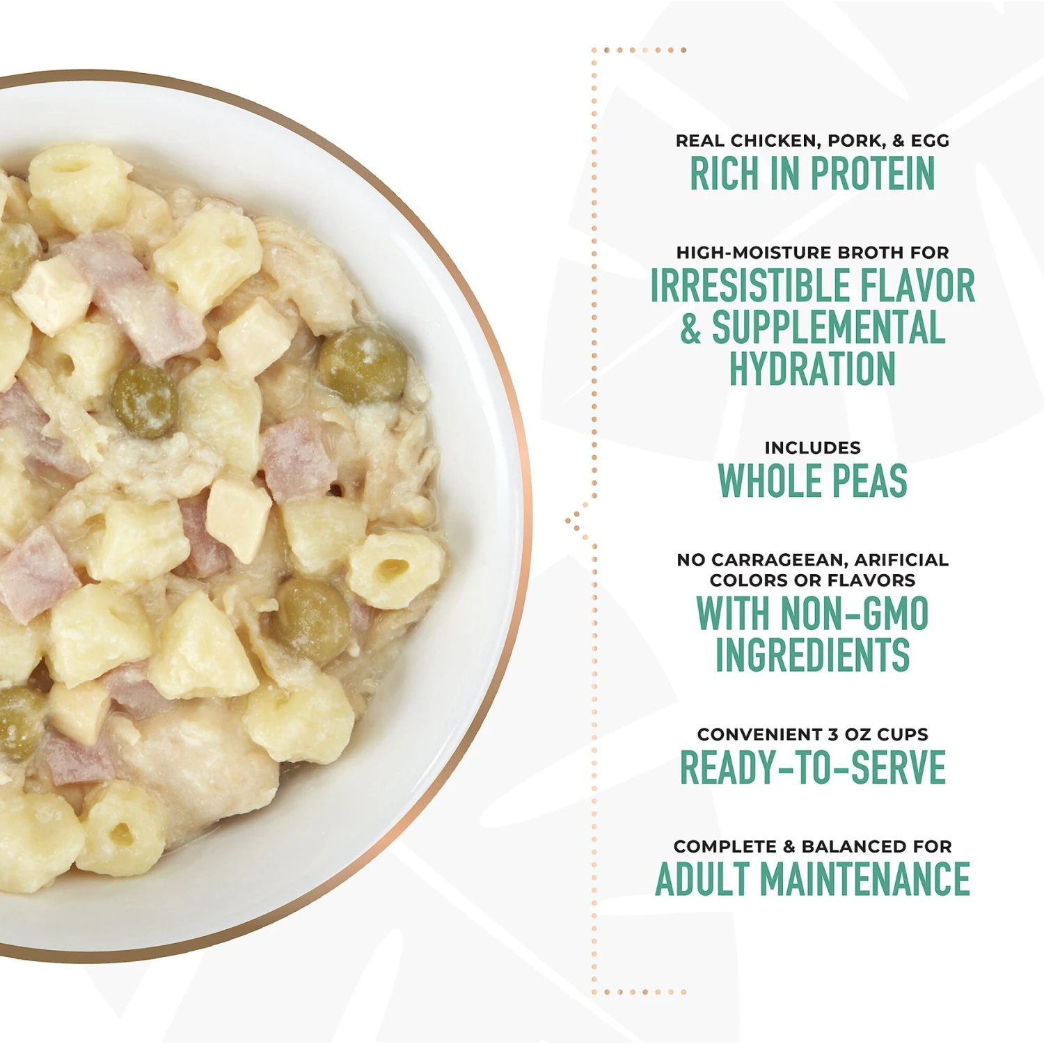- Wet dog food crafted with real chicken broth.