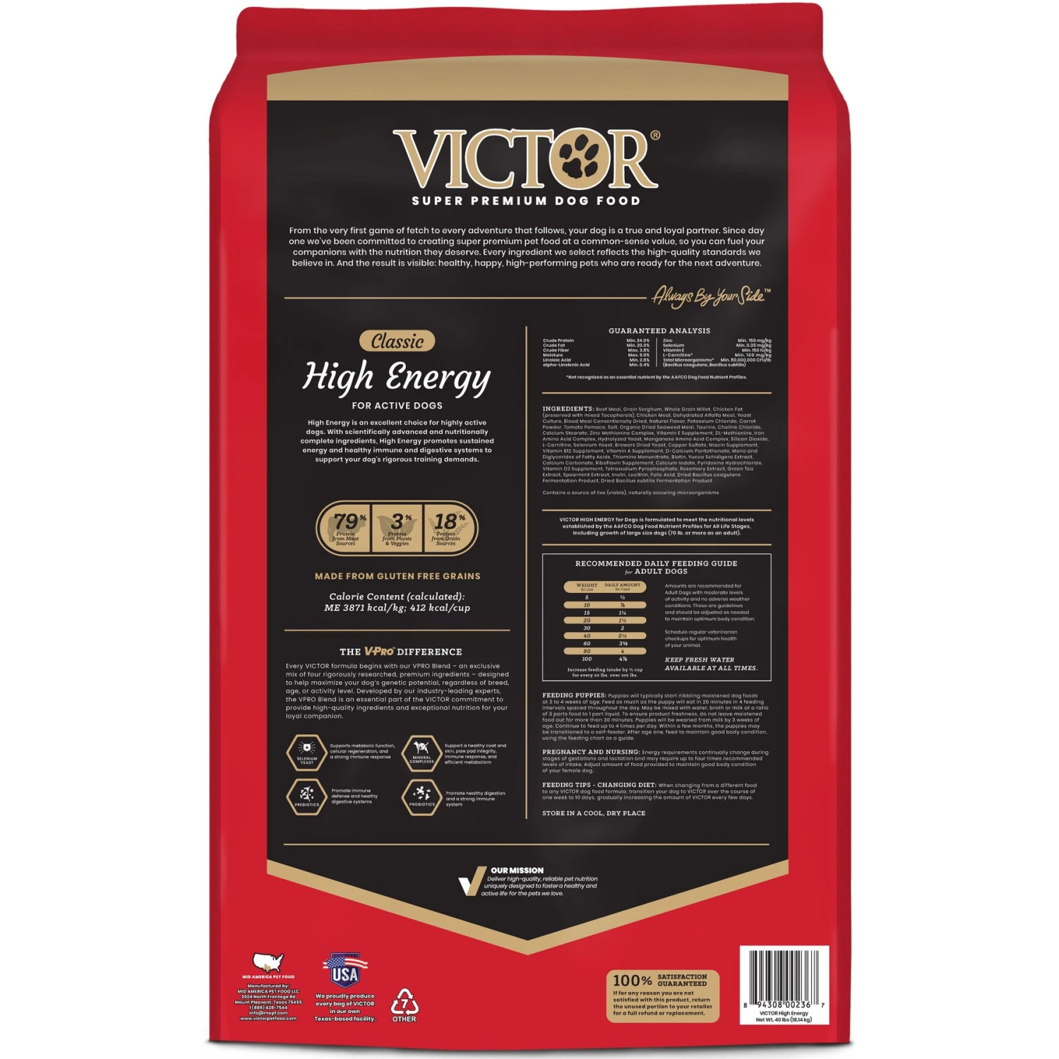 - Sourced and Made in the USA. Composed of 79% meat protein with premium-quality beef, chicken and pork meals.