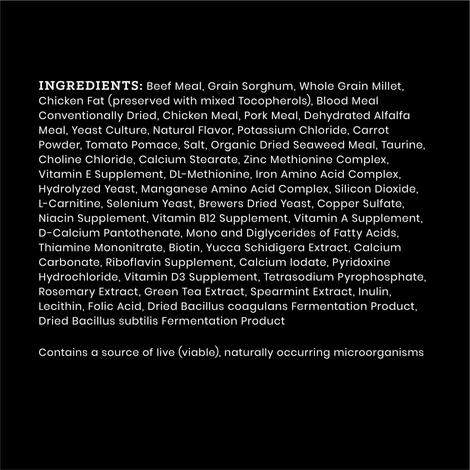 - Sourced and Made in the USA. Composed of 81% meat protein with premium-quality beef, chicken and pork meals.