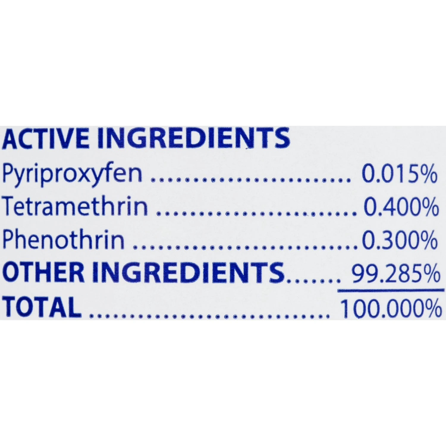 - Contains pyriproxyfen, an Insect Growth Regulator that inhibits flea growth and kills fleas before they reach the adult biting stage.
