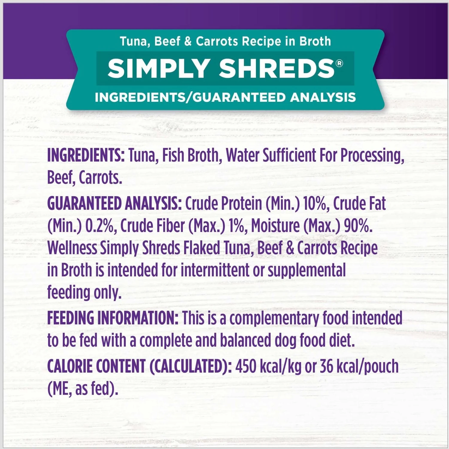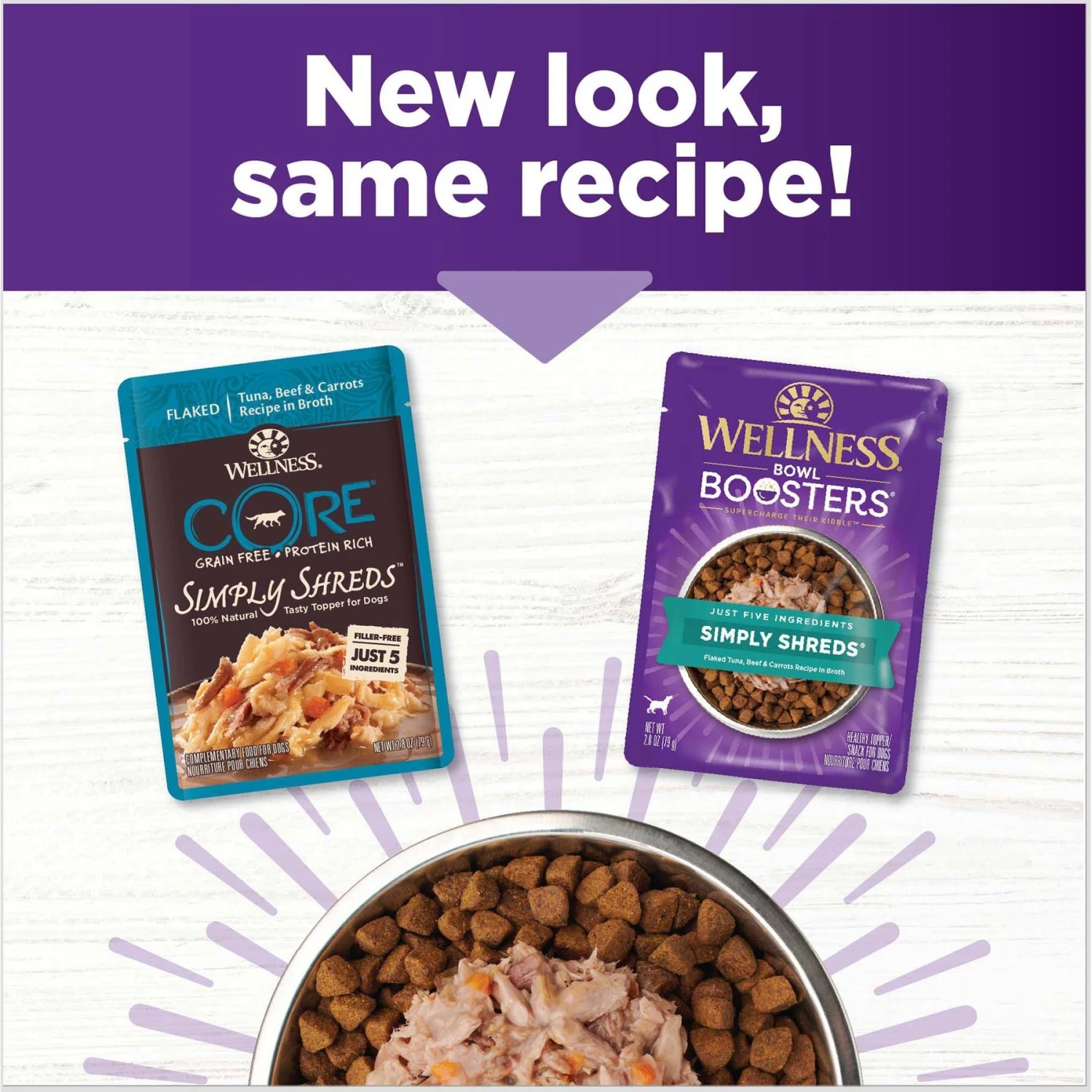 Wellness Bowl Boosters Simply Shreds Tuna, Beef & Carrots Natural Grain-Free Wet Dog Food Mixer Or Topper, 2.8-oz Pouch, Case Of 12