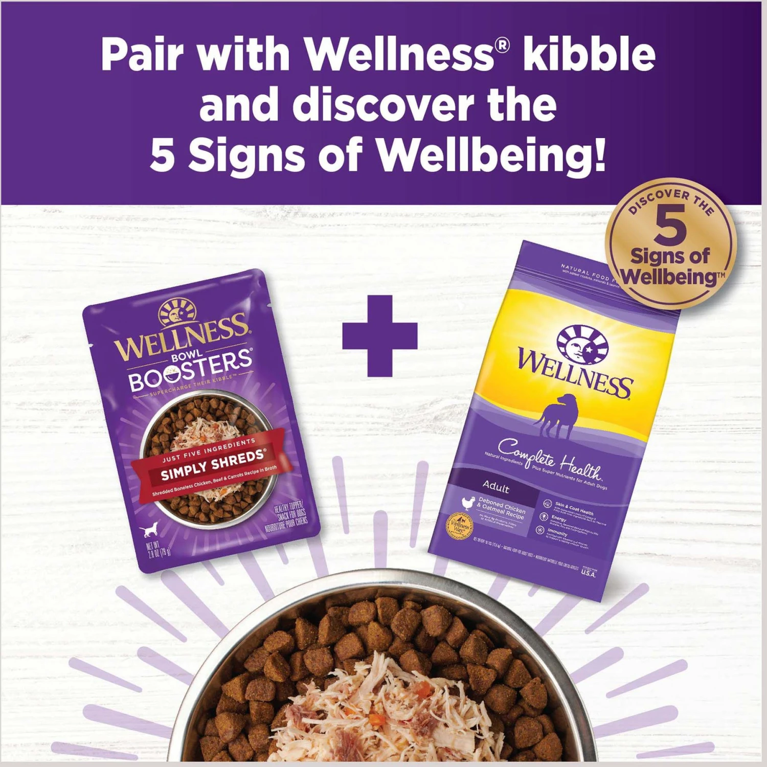 Wellness Bowl Boosters Simply Shreds Variety Pack Dog Food Topping, 2.8-oz Pouch, 12 Count