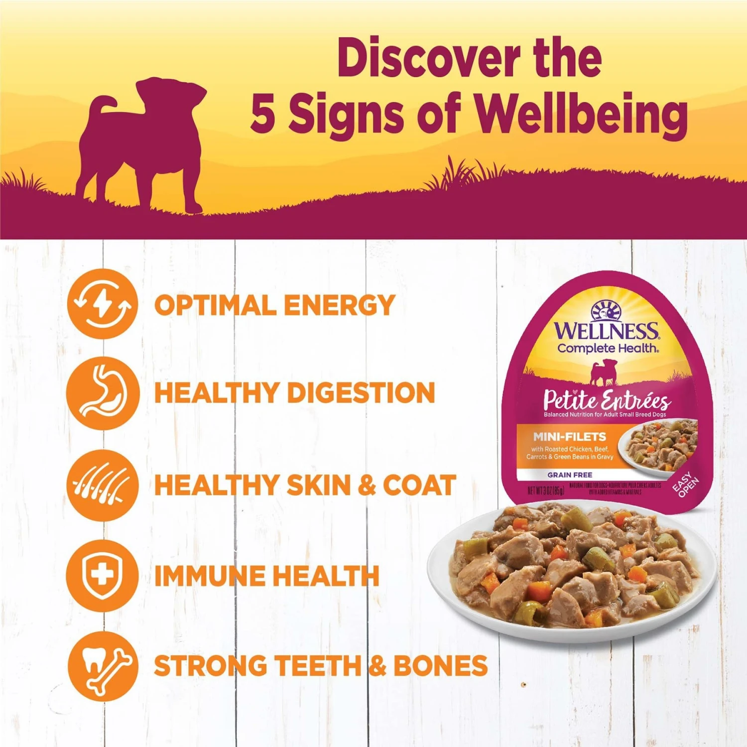 Wellness Petite Entrees Mini-Filets Chicken & Beef In Gravy Small Breed Natural Wet Dog Food, 3-oz Cup, 12 Count